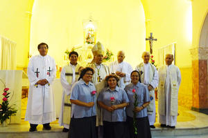 A las 5:00 pm Mons. Salvador Piñeiros celebró la Eucaristía de lo votos Perpetuos de Sr Angélica...